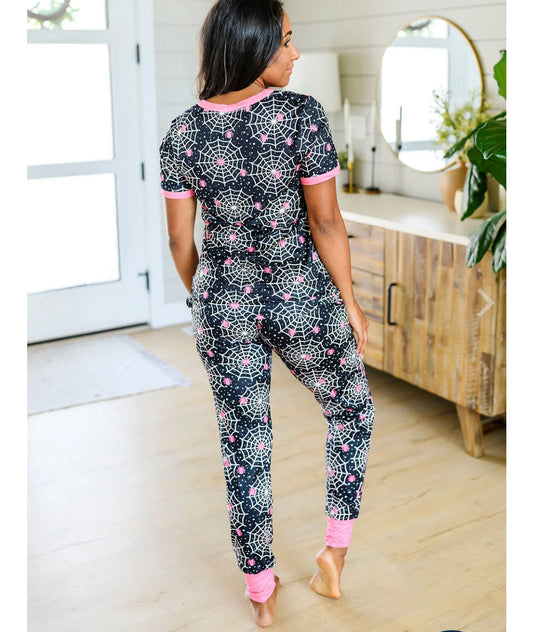 Shirley & Stone Halloween spiderweb jogger pajama set