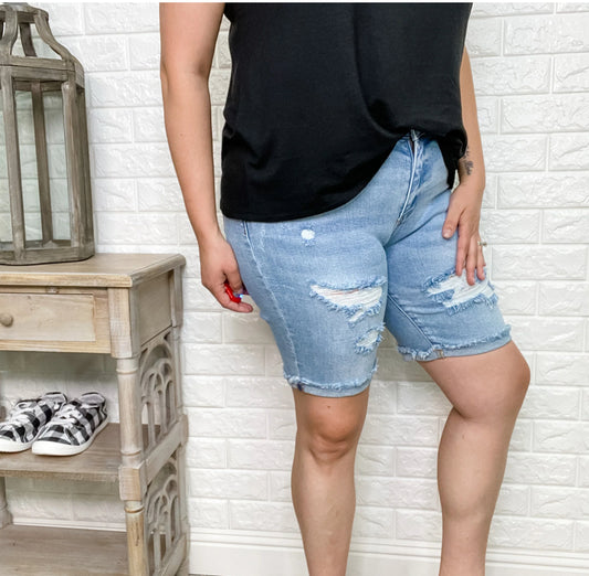 Judy Blue Bermuda cuffed distressed shorts