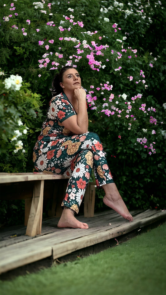 Shirley & Stone Hunter Green boho floral lounge jogger pajama set